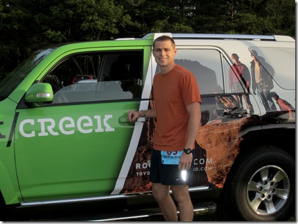Dave and his dad got up early Saturday morning to get to the race well before the start time of 8:00am, which ended up getting pushed back to 8:30. Here he is getting ready to start the Scenic City Trail Marathon!